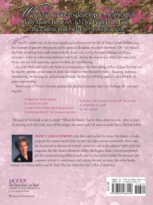 To help you jump-start a daily devotional life, best-selling author Nancy DeMoss Wolgemuth guides you through an in-depth study into thirty of her favorite psalms. Each day includes questions and suggestions to help you explore each psalm and make them part of your daily life.